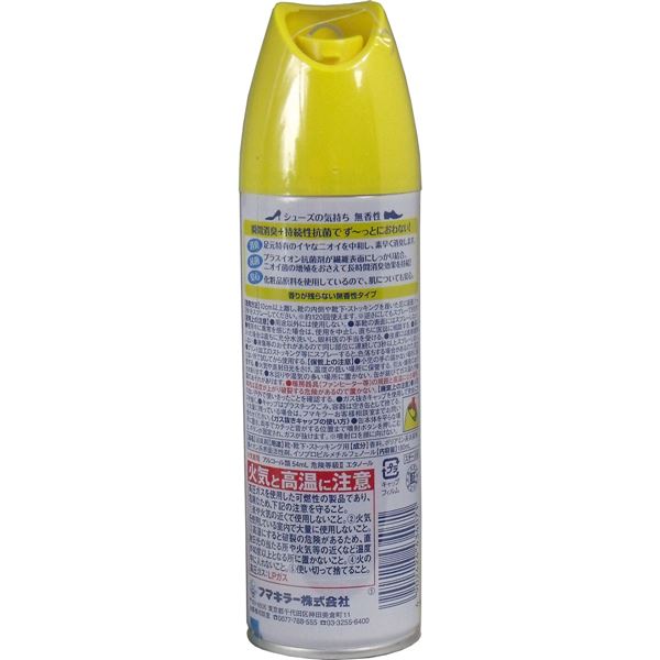 【成分】香料、ポリアミン系消臭剤、陽イオン系界面活性剤、イソプロピルメチルフェノール【規格概要】品名:消臭剤用途:靴・靴下・ストッキング用【注意事項】・火気厳禁・用途以外には使用しない。